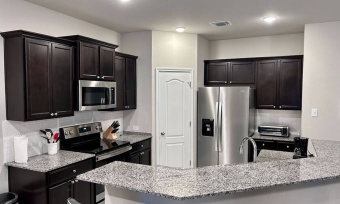 Welcome to your ideal escape! This charming retreat offers everything you need for an unforgettable vacation. With a vibrant atmosphere and convenient access to local attractions, you’ll feel relaxed and rejuvenated from the moment you arrive. Property Highlights: Spacious Accommodations: Our home comfortably sleeps up to 8 guests, featuring 4 beautifully appointed bedrooms with cozy linens and ample storage. The open-concept living area invites gatherings, complete with a large screen TV and plenty of seating for family fun. Fully Equipped Kitchen: Cook your favorite meals in the modern kitchen, equipped with stainless steel appliances, granite countertops, and all the cookware you need. Enjoy meals at the dining table or step outside to the private patio for al fresco dining. Outdoor Oasis: Step outside to your own slice of tranquility! The outdoor space includes a spacious deck with comfortable seating, perfect for morning coffee or evening sunsets. Enjoy barbecues on the grill for family cookouts. Ideal Location: Located just minutes from local attractions, you can easily explore parks, dining, and shopping. Enjoy nearby activities and entertainment options for all ages. Amenities: Our property includes complimentary Wi-Fi, air conditioning, laundry facilities, and off-street parking. Family-friendly features such as a high chair and crib are also available upon request. Guest Experience: We pride ourselves on providing a welcoming atmosphere. Our dedicated property manager is available 24/7 to assist you with anything you might need during your stay. Book Your Stay Today! Whether you’re looking for a peaceful retreat, a family vacation, or an adventure with friends, our home is the perfect choice for up to 8 guests. Don’t miss the chance to create lasting memories. Book now and experience the charm and hospitality that awaits you!
