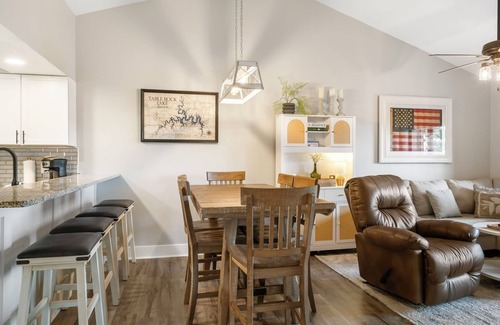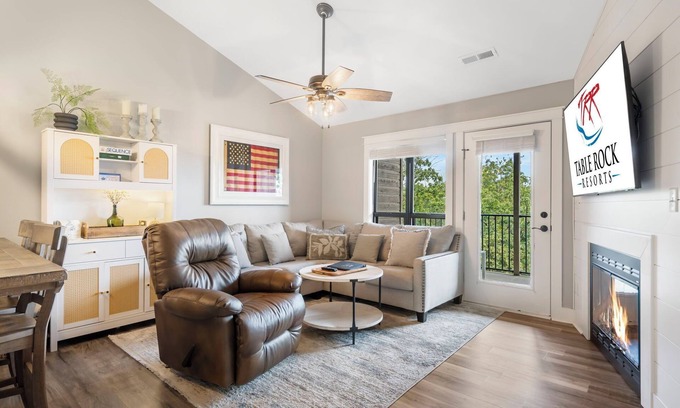 This beautifully renovated condo offers both comfort and functionality, making it the perfect base for an unforgettable getaway. Enjoy breathtaking views of Table Rock Lake from the covered balcony, where you can unwind and embrace your vacation. The condo includes a fully equipped kitchen, a dining area, and a seasonal fireplace.