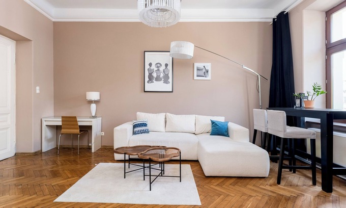 Miodowa Heart of Cracow Apartment is a unique apartment located in the heart of Kazimierz - the most fashionable and one of the most atmospheric districts of Krakow, full of historic architecture, atmospheric cafes, restaurants and vibrant cultural events. The location in this historic part of the city guarantees a unique atmosphere and excellent access to all of Krakow's attractions.