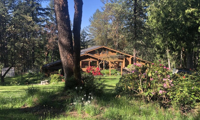 Escape to our charming garden retreat with a private entrance through lush greenery. Enjoy delightful outdoor dining amidst the enchanting sounds of chirping birds. Immerse yourself in nature's tranquility, embraced by serene forest surroundings. Cozy up around the outdoor firepit with seating. Please note that the firepit is shared with guests in the Main House.