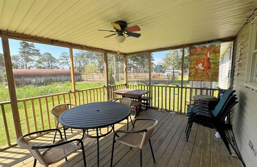 This bright and cheerful home is tucked away on a private lane next to the historic Misty's Pony Farm. With a quiet location and a spacious screened back porch, this house is perfect if you want to relax in nature but still be close to downtown. It offers a first floor bedroom and bath. Close to Summer Memories. Now offering WiFi.