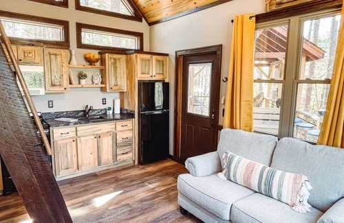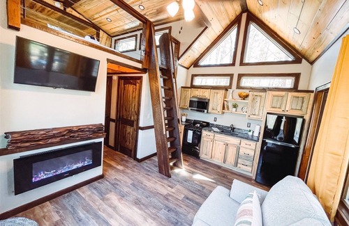 If you are looking for the perfect couple's getaway look no further than Misty Mountain Treehouse! Suspended in the treetops and canopied in leafy branches, this treehouse is more magical than a traditional cabin. Misty Mountain Treehouse offers ample deck space to enjoy the sounds of nature as you sway with the wind while relaxing on the porch swing. After a day of exploring all that Blue Ridge has to offer, slip into the covered hot tub for a night of relaxation as you listen to the soothing sounds of night fall in the mountains.