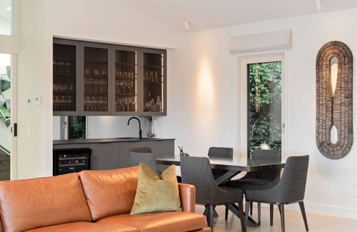 The state-of-the-art chefs kitchen is equipped with premium European appliances, a convenient breakfast bar, and a wine fridge, making it perfect for entertaining. The villa features a carefully curated art collection, featuring a striking neon sculpture by Gregor Kregar and works by renowned artist Ralph Hotere, adding a unique touch to your stay.