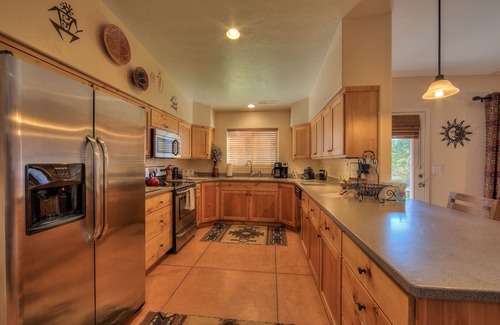 Spacious Luxury Oleander Place town home with 3 high end furnished bedrooms and 3 bathrooms, 2 car garage for your vehicles, bikes, and toys, with fabulous views of the Moab Rim and the La Sal Mountains toward the east.