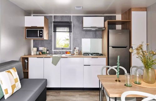 Mobil-home Luxe SPA - 2 bedrooms - 2 bathrooms - 2 WC - CLIM - TV + Dishwasher + Jacuzzi 6 people is located in Pouzauges. Mobil-home Luxe SPA - 2 bedrooms - 2 bathrooms - 2 WC - CLIM - TV + Dishwasher + Jacuzzi 6 people provides accommodation, featuring Air Conditioner, TV, Balcony/Terrace, among other amenities. This House features Air Conditioner, TV, Balcony/Terrace, to make your stay a comfortable one.