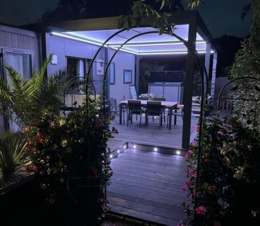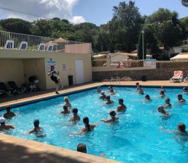 Mobil-home Parc Montana Gassin features a hot tub and a fitness room, as well as air-conditioned accommodations in Gassin, 5.6 miles from Chateau de Grimaud. This property offers access to a patio, mini-golf, free private parking, and free Wifi. The outdoor swimming pool features a water slide and fence. The apartment provides guests with a terrace, garden views, a seating area, a flat-screen TV, a fully equipped kitchen with an oven and a microwave, and a private bathroom with shower and a hair dryer. A toaster, a fridge, and stovetop are also available, as well as a coffee machine. The rooms are equipped with heating facilities. Guests are welcome to eat at the on-site restaurant, which is open for dinner and cocktails. Guests can stay active with the fitness classes held in house. For guests with children, Mobil-home Parc Montana Gassin provides kids pool and outdoor play equipment. Guests at the accommodation can enjoy tennis on-site, or go cycling or hiking in the surrounding area. Le Pont des Fées is 5.7 miles from Mobil-home Parc Montana Gassin, while Saint-Raphaël Valescure Train Station is 23 miles from the property. Toulon - Hyeres Airport is 29 miles away.