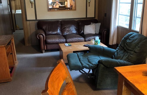This is a two bedroom Mobil home. Has everything you need . Great for short or long stays . Atv and snowmobile trail is at the end of the driveway it’s a great location for that. Would sleep no more than 3 comfortably. Could book the main house as well for more sleeping options for larger parties..