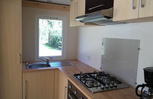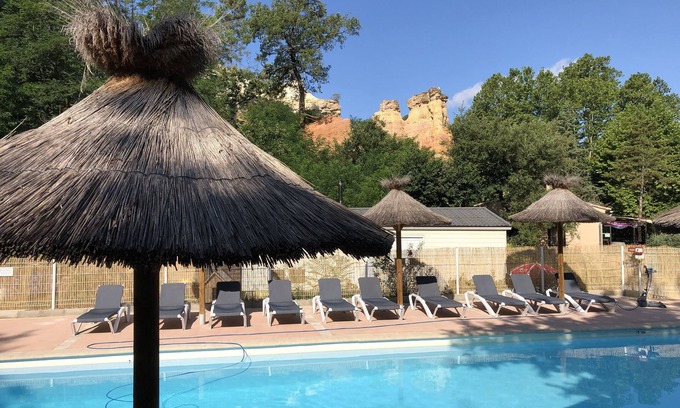 mobile home 1 room with a bed 140, a room with 2 beds 90, a room of water, corner cooks, toilet, and wooden terrace, being close to Colorado Provençal in camp-site with swimming pool, snack bar, playground , multisport field, ping pong table. Ideal place to visit the Lubéron on foot as by bike. In a green setting of 5ha, in the heart of the ocher quarries of Rustrel, swimming pools, recreation, idleness, walks, the atmosphere that emerges from this place is truly fascinating, admire the multicolored contrasts of the earth, foliage on the background of the Luberon sky.