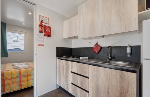 Located in Ispra, the mobile home Casa Mobile Standard 1 with step-free interior offers guests a fantastic view of Lake Maggiore. The 20 m² property consists of a living room, a kitchen, 2 bedrooms and 1 bathroom and can therefore accommodate 4 people. Additional amenities include Wi-Fi, a TV as well as air conditioning. Furthermore, a table tennis table is available on the property. A high chair is also available. This accommodation does not offer: towels. This mobile home features a private covered terrace for relaxation.