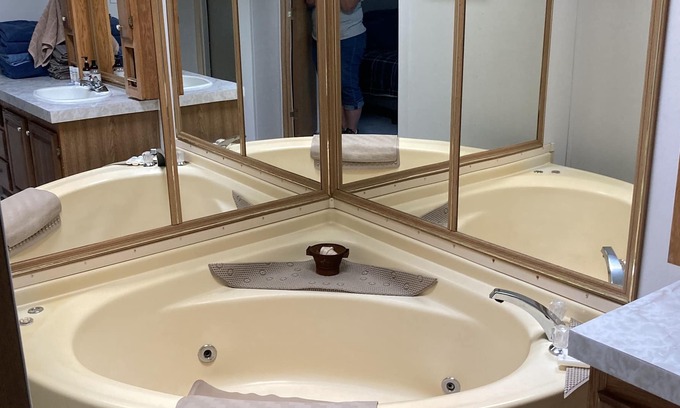 This family style unit will be cheaper than and more comfortable than any hotel like setting for you and your family. Forest Hills Mobile home park is in the forest. You will enjoy privacy in this cozy, very clean unit. Complete kitchen for cooking. Complete laundry room with laundry soap. Living room with TV cable and internet.