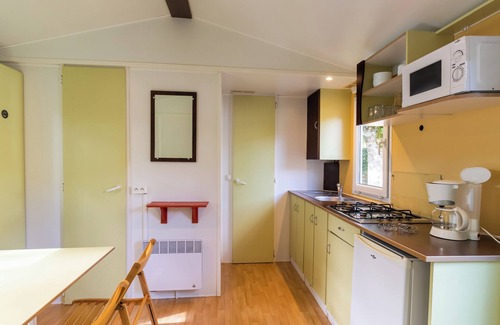 Ideal for a simple and practical stay, this comfortable mobile home is designed to host up to 4 guests. Perfect for a couple with children or a small group of friends, it offers all the essentials in an optimized, compact layout.