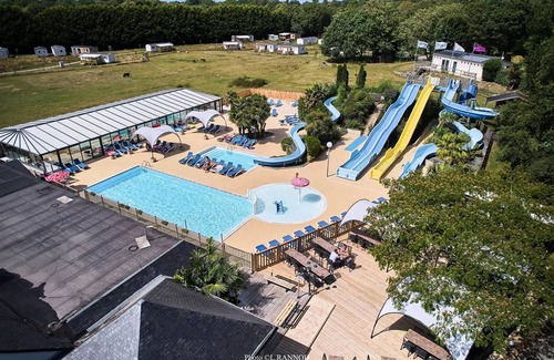 Residence: The Campsite Les Jardins du Morbihan benefits from aquatic space which ensures fun and relaxation throughout the season: - 1 Outdoor heated pool- 1 Indoor heated pool- 2 Paddling pool- 5 Water slideYou can also find everything you need to relax: - Solarium - terrace- Transates- Hot tub (extra charge)- Sauna (surcharge)- Hammam (surcharge)- Massages (surcharge)- Body care (surcharge)- Relaxing bench (extra charge)You will enjoy your holidays!Many activities are available on site: - Playground- Inflatable structure- Trampoline- Mini-golf- Ping-pong- Mini farm- Multisport terrain- Football- Basketball- Pool (surcharge)- Baby Foot (extra charge)- Video game room (extra charge)And close to the site: - Golf (7 km)- Karting (9 km)- Equation (in 7 km)- Riding stable (7 km)You won't get bored!Many animations You'll be able to enjoy your holidays. Daytime: In the evening: - Theme evening- ShowGet ready for a sporty and fun holiday!Children will have fun and enjoy the activities offered by the clubs on site: - Children's Club (5-17 years)Multiple services practices are proposed. To eat: Bar- Snack.- Takeout dishes- Bread depot- Bakery / Vienna- MarketAvailable: - Wifi (extra charge)- Laundry (extra charge)- Dryer (extra charge)- One dog allowed (-6 kg / excluding 1st and 2nd cat.) (surcharge)- Barbecue coal permitted- Collective barbecue- Barbecue gas permittedOther information: Languages spoken at the reception: French