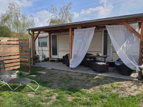 Offering a garden, Mobilheim v LVA 2 offers accommodations in Podivín. The property is around 3.6 miles from Lednice Chateau, 8 miles from Chateau Valtice, and 2.6 miles from Minaret. There's a children's playground and guests can use free Wifi and free private parking. Leading onto a terrace with garden views, the air-conditioned campground consists of 2 bedrooms and a fully equipped kitchen. Towels and bed linen are featured in the campground. The property offers inner courtyard views. Sightseeing tours are available around the property. A car rental service is available at the campground, while skiing and cycling can be enjoyed nearby. Chateau Jan is 4.3 miles from Mobilheim v LVA 2, while Colonnade na Reistně is 9.1 miles away. Brno-Turany Airport is 30 miles from the property.