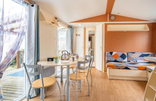 Mobilhome - piscines - terrasse is located in Angles, just 23 miles from Les Sables D'Olonne Arena and 27 miles from Mytiliculture Museum. Guests can benefit from a terrace and an outdoor pool. Outdoor seating is also available at the campground. The campground consists of 2 bedrooms, a living room, a fully equipped kitchen with an oven and a coffee machine, and 1 bathroom with a shower and free toiletries. A TV is available. For added privacy, the accommodation features a private entrance. For guests with children, Mobilhome - piscines - terrasse features kids pool and a children's playground. Guests can swim in the indoor pool, and go cycling or hiking. La Rochelle - Île de Ré Airport is 37 miles from the property.
