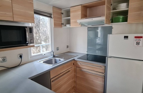 Air-conditioned accommodations at Mobilhome Premium 3 Chambres 6p Camping Domaine Ste Baume Face à la Piscine offer coffee/tea makers and hair dryers. Kitchenettes offer refrigerators, stovetops, microwaves, and cookware/dishes/utensils. Housekeeping is provided on a limited basis.