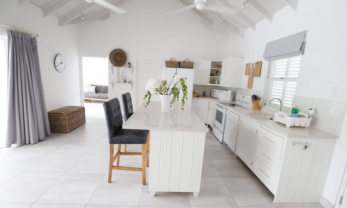 Driftwood villa is modern and airy with tasteful decor throughout. The villa has 3 double bedrooms all benefiting from open ceilings finished by local craftsmen using a lime whitewash.