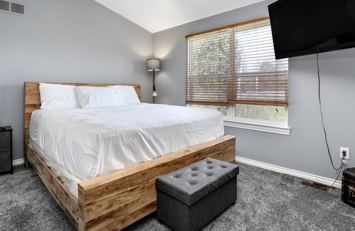 This modern and spacious abode offers a comfortable and stylish setting for your stay. With tons of amenities, including FREE PARKING WiFi, Smart TV, patio, grill and even a wine cellar.