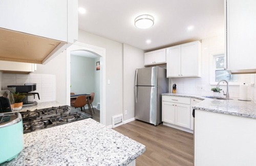 Discover modern comfort in University Heights! Nestled adjacent to a scenic park & playground, our 3-bedroom home is perfect for families & travelers. Dive into 620+ games on our Nintendo, or take a short 20-minute drive to vibrant downtown Cleveland. For pet lovers, we welcome your furry friends (fees apply). Stay connected with complimentary Wi-Fi, and kick-start your mornings with our free coffee. At day`s end, relax knowing you`re in a space meticulously cleaned for your utmost comfort.