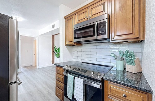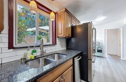 The modern kitchen is a chef's dream with granite countertops, stainless steel appliances, and a Keurig Duo coffee maker to fuel your mornings. Share meals and laughter around the dining table, or kick back in the cozy living room with plenty of space to relax.
