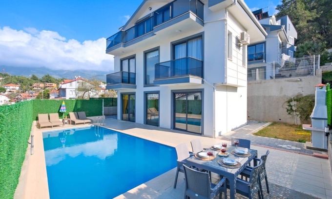 Villa Simge is a modern holiday retreat that combines the unique nature of Ölüdeniz with the convenience of being close to the vibrant town center. With 4+1 rooms and a capacity for 8 guests, this stylish villa is designed to provide a comfortable and enjoyable vacation experience. It features a private swimming pool, spacious living room, and open kitchen for a relaxing stay. Located just 3 minutes from Ölüdeniz Beach and within walking distance to entertainment and shopping centers, Villa Simge is the perfect choice for an unforgettable holiday.