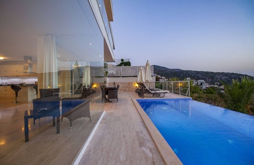 Modern 4 bedroom villa + Infinity pool with stunning views is located in Kalkan. Modern 4 bedroom villa + Infinity pool with stunning views provides accommodation, featuring Air Conditioner, TV, Security/Safety, among other amenities. This Villa features Air Conditioner, TV, Security/Safety, to make your stay a comfortable one.