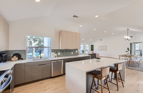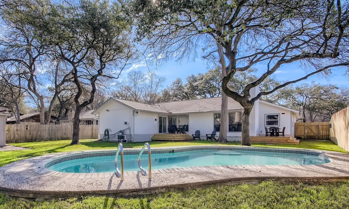 The perfect getaway for your friends or family, our beautiful 4 bedroom 2.5 bathroom recently-renovated house has everything you need to have a great time. Includes a spacious modern kitchen, living room with large TV, pool and outside dining. Funky bathrooms included! In a perfect location, striking distance to all that Austin has to offer.