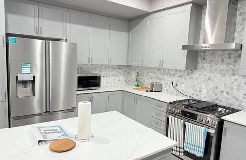 This brand-new 4-bedroom home in Port Colborne offers luxury and comfort with an open-concept living area, a formal dining room, and a cozy indoor fireplace. The fully equipped kitchen and 3.5 bathrooms, including a master ensuite, ensure convenience for families or groups. Enjoy high-speed Wi-Fi, Smart TV, and a peaceful neighborhood close to beaches, shops, and the Welland Canal. Perfect for a relaxing getaway!