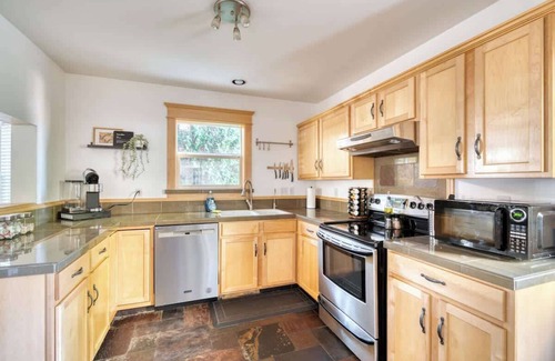 If you feel like eating in, there's a fully equipped kitchen with new appliances and a big farmhouse-style table in the spacious dining room to easily host your crew - not to mention a local co-op down the street! There's also dozens of local restaurants within walking distance, including several of our favorite food carts!