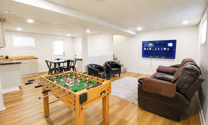 Just minutes from Liberty University, University of Lynchburg, and River Ridge Mall. Enjoy a fully equipped kitchen, two cozy living rooms with smart TVs, high-speed WiFi, and a fenced backyard great for relaxing or family fun.