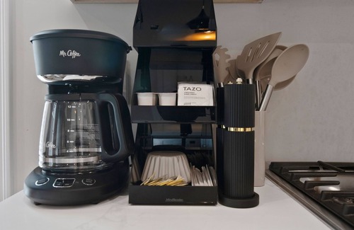 - Coffee machine, tea, toaster, microwave, kettle
