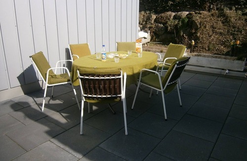 The terrace on the second floor is ideal for enjoying the morning sun on the deck chairs and having breakfast at the table.