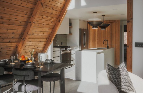 Not pictured yet is an upstairs lounge area in the balcony of the a-frame. This will include a pull out queen couch, tv, foosball table, games - a full lounge space.