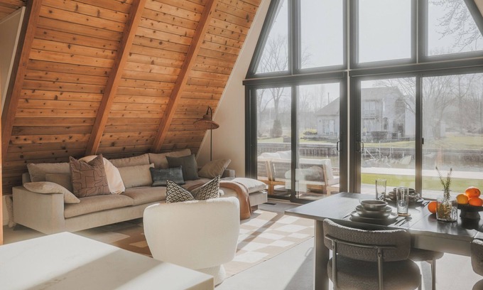 Modern Aframe Lake Views, Sauna, Hot tub, & Paddleboards | House in Fremont