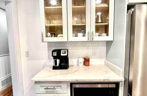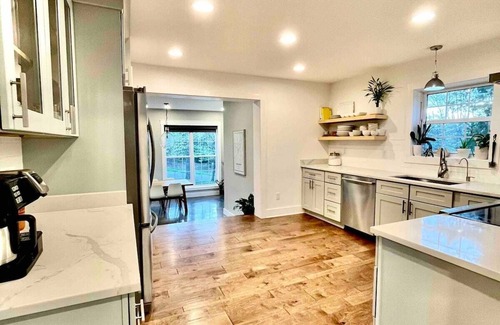 Bright and stylish place is perfect for groups. Tri-level home creates separate spaces but 3 common areas as well that can be used for extra sleeping. Two deluxe king mattresses available upon request. We provide a fully stocked kitchen including crockpot, instant pot, ninja blender, and multiple seasonings that you won't have to buy. Our home has comfortable furnishings with modern appeal. This pet free and smoke free property is in the heart of Hardin county and conveniently located 10 minutes from the Ft. Knox gate, 10 minutes from the Elizabethtown Sports Complex, and 45 minutes south of Louisville, KY hosting the PGA this summer. Fun day-trips from Vine Grove include Mammoth Cave National Park, The Bourbon capital-Bardstown Ky, Lincoln's birthplace in Hodgenville, Ky, and of course the Patton museum at Ft. Knox honoring General Patton. WE OFFER DISCOUNTS FOR WEEKLY OR MONTHYLY STAYS. We hope you enjoy your time with us!