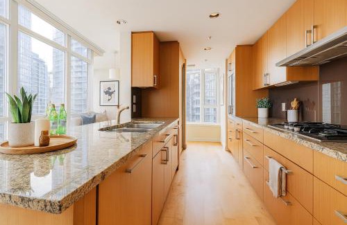 Modern and Spacious 2BR Apartment in Coal Harbour is located in Vancouver, just a 9-minute walk from Olympic Cauldron and 0.8 miles from Pacific Center Mall Vancouver. This apartment provides air-conditioned accommodations with a patio and free Wifi. The property is a 19-minute walk from English Bay Beach and within 0.6 miles of the city center. Providing a balcony and sea views, the spacious apartment includes 2 bedrooms, a living room, flat-screen TV, an equipped kitchen, and 2 bathrooms with a walk-in shower and a bath. Towels and bed linen are featured in the apartment. The accommodation is non-smoking. Popular points of interest near the apartment include Coal Harbour, Christ Church Cathedral, and Waterfront Skytrain Station. Vancouver Coal Harbor Seaplane Base Airport is 0.6 miles away.