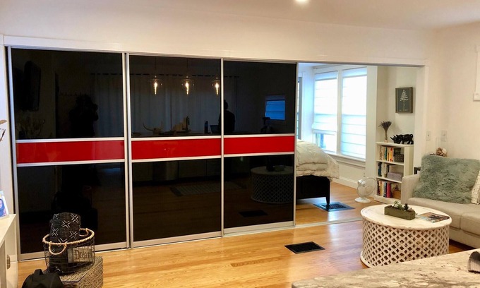 Every detail of this unique and modern apartment was carefully selected and quality crafted. Highlights include a custom island kitchen with stunning granite and built in appliances (Bosch & KitchenAid) Floor to ceiling custom fabricated colored glass panels are beautifully positioned and operational for privacy or an open view from the bedroom to the kitchen. Modern bathroom with a tiled standup shower and tiled floor.