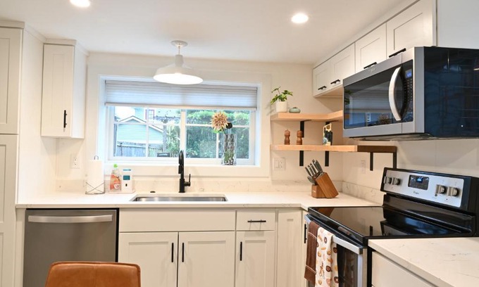 Modern and warm house is located in Seattle, just 5 miles from Space Needle and 5.8 miles from Lumen Field. This property offers access to a patio, free private parking, and free Wifi. Outdoor seating is also available at the vacation home. This vacation home includes 2 bedrooms, a living room and a flat-screen TV, an equipped kitchen with a dining area, and 1 bathroom with a bath and a washing machine. A private entrance leads guests into the vacation home, where they can enjoy some chocolates or cookies. The vacation home offers bed linen, towels, and laundry service. Guests can also relax in the garden. Tiger Mountain State Forest is 20 miles from Modern and warm house, while University of Washington is a 19-minute walk away. Seattle Lake Union Seaplane Base Airport is 4.3 miles from the property.