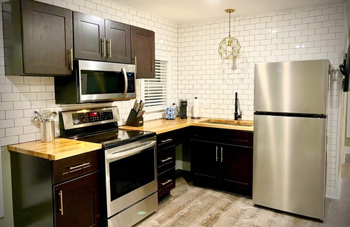 Newly renovated 2nd floor apartment with 2 queen beds and full kitchen. Walking distance to downtown, biking/hiking trails and at the base of Rich Mountain and the entrance to the Talimena Scenic Byway. Motorcycle and ATV trailer friendly. The downstairs apartment is also a vacation/corporate rental for friends traveling together. Perfect location to all that Mena has to offer.
