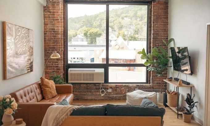 Enger Lofts Hotel is your adventure-town getaway in the heart of the Craft District of Duluth, this hotel is right next door to plethora of breweries and restaurants. Remodeled in 2020, this 1800s era warehouse features a modern kitchen, soaring ceilings, & large windows inside an airy, cozy studio.