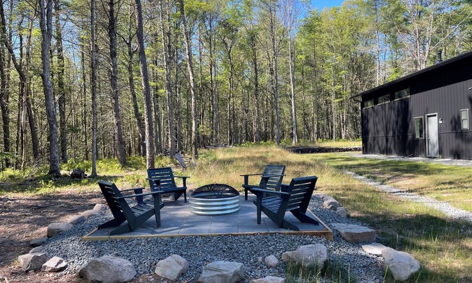 This brand new 3,200 sq ft building on 2 acres is set back over 300' from the road, with no neighboring structures in view from the back of the property (totally private). The rental space (half of the building) is a clean, modern 1,600 sq ft City-like apartment set in the countryside. Guests can also enjoy outdoor areas like the front porch, the surrounding yard and the fire pit patio out back. There is a grill on the front porch with a table and chairs, seating and firewood provided for use with the fire pit.