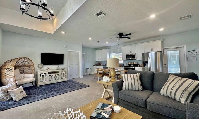 Modern Beach Cottage - Just Steps to the Ocean is located in Cocoa Beach. Modern Beach Cottage - Just Steps to the Ocean provides accommodation, featuring Barbecue/Outdoor Cooking, Sports/Activities, Entertainment, among other amenities. This Cottage features Barbecue/Outdoor Cooking, Sports/Activities, Entertainment, to make your stay a comfortable one.