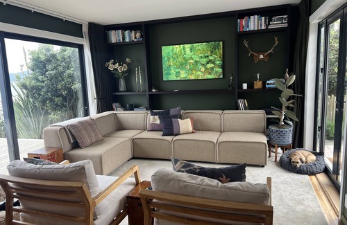 A secluded warm, comfortable, modern home, right on the beach. Newly built and architecturally designed, a spacious section on a private col de sac the property includes kids facilities - trampoline, fort and swing.