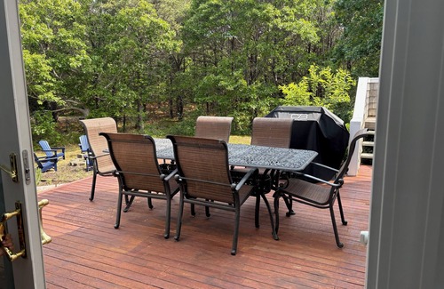 The house features 4 bedrooms, a pull-out sofa, and 2 full bathrooms, which can easily accommodate 8-10. Towels and linens provided, along with beach accessories. A ping-pong table in the basement, board games, outdoor firepit, and outdoor shower allow you to enjoy an evening or relaxing day at the house.