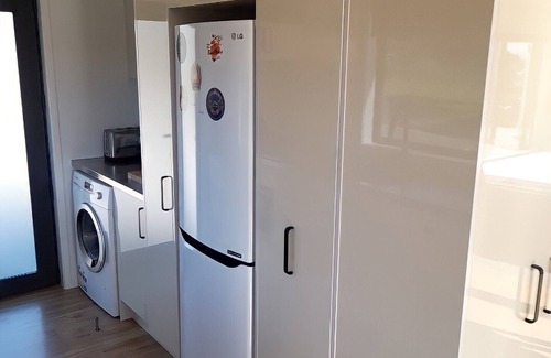 You will find a fully equipped kitchen including appliances like coffee machine, dishwasher, oven and hobb.