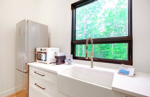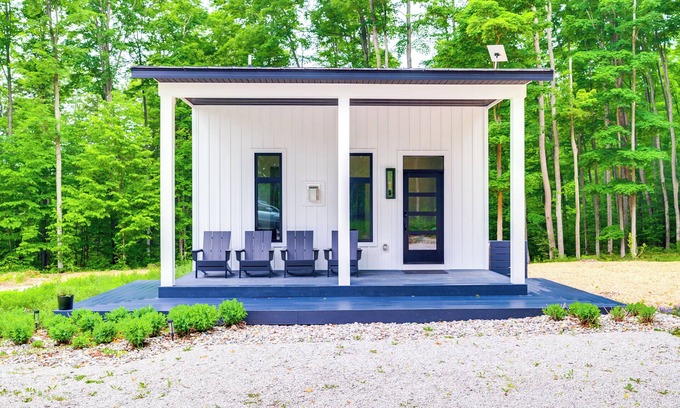 This modern vacation rental is a new construction featuring 1-bedroom and 1- bathroom, ensuring a picturesque getaway. Indoors, guests can enjoy a cozy fireplace and stunning views of vibrant foliage in autumn or lush green landscapes in summer. Outside, the front porch offers a tranquil retreat amidst 10 acres of private forest, complemented by an organic garden. There's plenty to explore nearby, from boating on Torch Lake to mountain biking and exploring trails at Schuss Mountain.