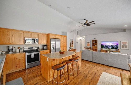 Escape to our charming Bend Retreat! This stylish, one-level home is a haven for outdoor enthusiasts. Fully-equipped kitchen, outdoor deck, & large, fenced yard make it ideal for families & dog lovers! After a day on the slopes or trails, unwind in our private hot-tub or cozy up by the wood-stove. Gather 'round the fire pit for marshmallow roasting or enjoy the media room with games, a Smart TV, & plush bean bags. Just 25 mins from Mt. Bachelor or Bend and a quick 10 mins to Sunriver. Come visit!