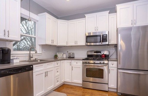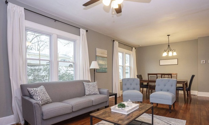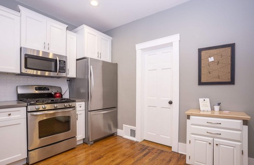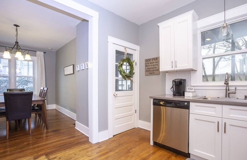 This newly renovated, lower level two bedroom apartment is within walking distance from one of Grand Rapids' hottest spots, Bridge Street! A bright kitchen with stainless steel appliances, stocked with coffee and a Keurig. An open concept living and dining room that's airy with lots of natural light. Driveway and street parking are available, and self check-in via a smart lock will make your stay easy and enjoyable!