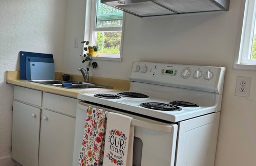 The Gardenia suite comes with 2 parking spots on the street. The front of the house is an ornamental garden and the back yard a rustic organic vegetable garden.