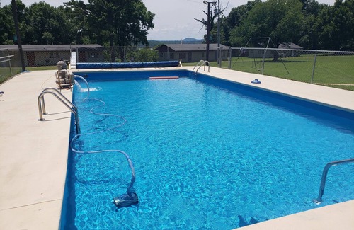 Yes, this Oakland cabin has a swimming pool. Check the Facility Overview section for details about the pool and other available facilities.