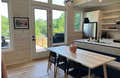 As you enter our brand new modern mountain home you will be greeted by lots of natural light & Mountain View’s in our open concept main space. The kitchen, dining and living room has that open floor plan that makes traveling with friends and family even more special. Our kitchen is well equipped with everything you could ever need for cooking that simple or elaborate vacation meal. Kitchen has dish and silverware for 8+, along with plastic ware for outdoor dining, and kids dishes for all our families. Brand new stainless steel appliances, a coffee bar stocked with coffee, assorted creamers and sugar. A hot water electric tea kettle and assorted teas, wine glasses and barware for all our mixologists. All the conveniences for those quick or plan ahead meals like an airfryer and crockpot. Lots of pots and pans to choose from along with bakeware, assorted spices and large sink and dishwasher allowing for easy cleanup.